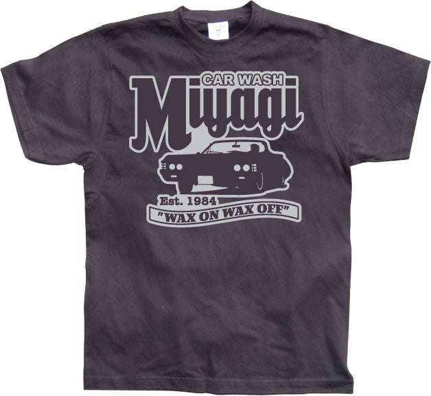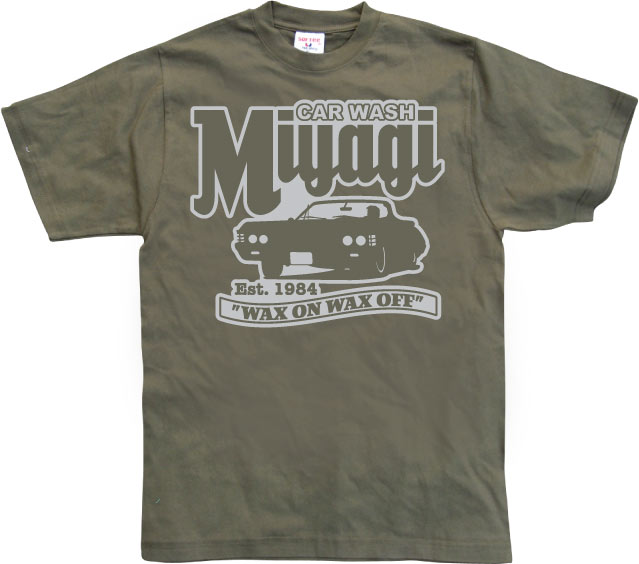 Helgrym t-shirt med Car Wash a la Mr Miyagi som myntade orden "Wax On Wax Off"!