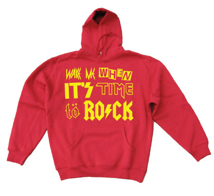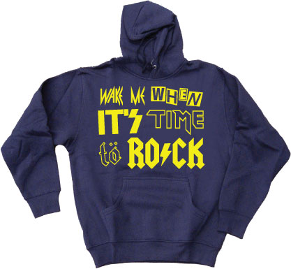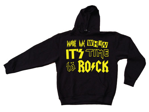 Cool huvtr&ampouml ja med Wake Me When It&ampacute s Time To Rock i klassiska "Rock typsnitt"...