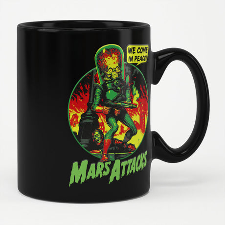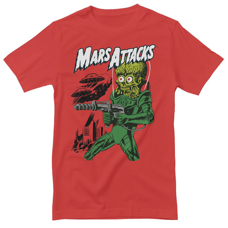Om du gillar tokigt iögonfallande designs, då är våra Mars Attacks-produkter för dig. Med det klassiska designs från 1962 års Topps-kort, galen stil av groteska marsianer som släpper lös förstörelse på jorden... dessa t-shirts och andra produkter fångar kaoset som gjorde den här serien till en kultfavorit inom sci-fi och skräckkonst.